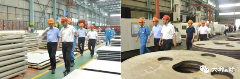 5月28日,河鋼邯鋼副總經(jīng)理李耀強、技術(shù)中心主任陳子剛、邯寶熱軋廠黨委書記潘竟忠、品質(zhì)管理部副部長白碩、銷售分公司副處長李建國等一行來訪大明,大明國際總裁蔣長虹、集團總工程師唐中海、靖江加工中心總經(jīng)理陳寧、集團碳鋼事業(yè)部總經(jīng)理鄧梁峰、副總經(jīng)理楊順、總經(jīng)理助理董云龍等熱情接待。李耀強副總經(jīng)理一行先后參觀了大明集團總部、大明靖江加工中心和大明重工,充分了解了大明的設(shè)備工藝、加工能力等情況。